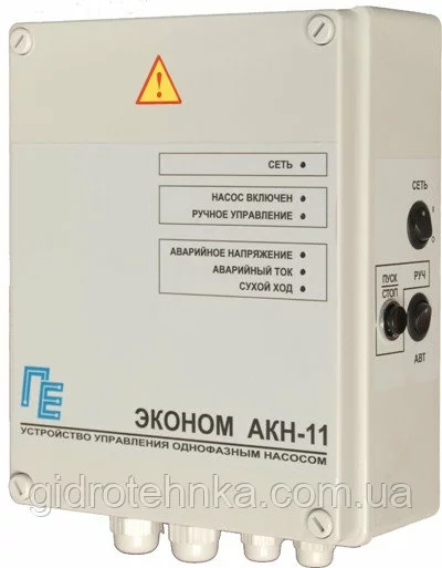 Пульт керування Економ АКН-11-1,1 — це пристрій для управління однофазними насосами потужністю від 0,37 до 1,1 кВт будь-яких виробників.