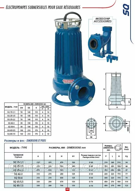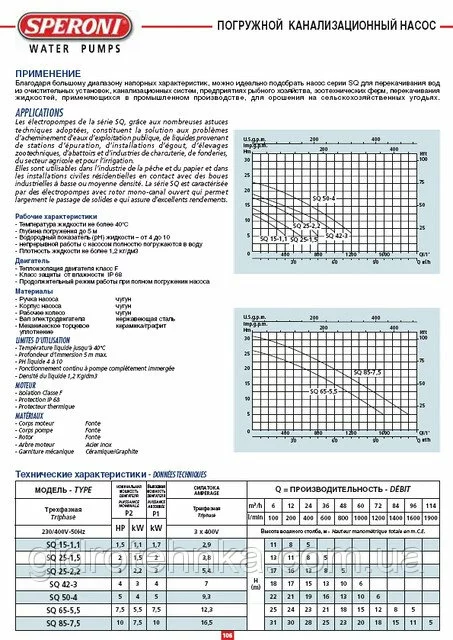 Насос Speroni SQ 42-3 - это погружной канализационный насос c одноканальным открытым рабочим колесом, что обеспечивает свободный проход взвешенных частиц. Насосы выполенены из чугуна.