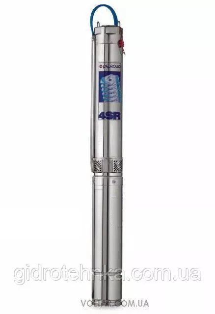 Насосы серии 4SR устанавливаются в скважины, диаметр которых больше 4’’ (100 мм). Насос опускается в обсадную трубу до полного погружения (минимум 50 см под уровнем воды и 1 м от дна скважины), при этом учитывается динамический уровень воды в скважине. В процессе установки насоса рекомендуется закрепить его тросом из нержавеющей стали, который продевается через специальные проушины на корпусе гидравлической части.