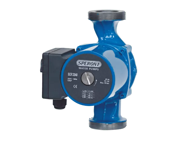 Speroni SCR - трехскоростные циркуляционные насосы с «мокрым ротором» серии SCR предназначены для работы в системах отопления и охлаждения, кондиционирования воздуха, в промышленных циркуляционных установках. В применении циркуляционные насосы удобны тем, что в зависимости от потребности с помощью простого и удобного переключателя можно установить необходимую частоту вращения вала двигателя.